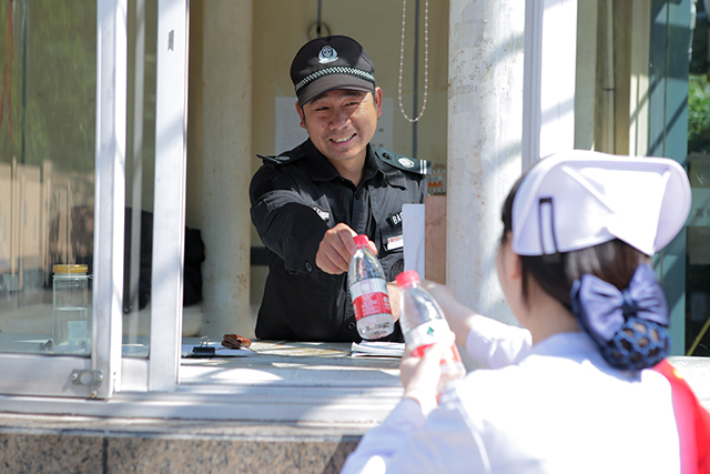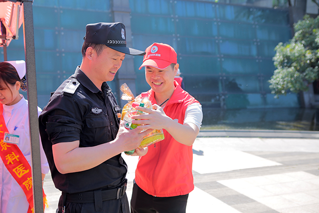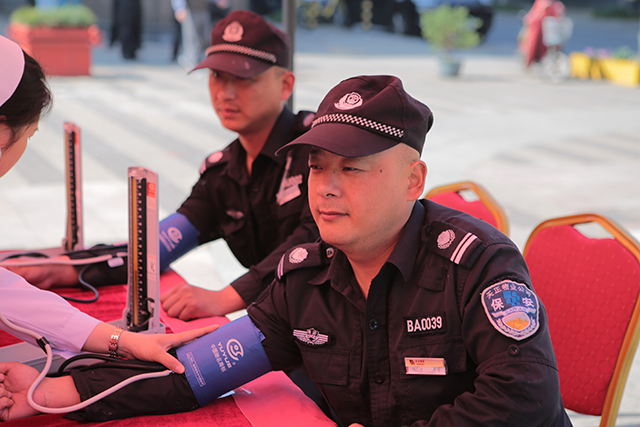 恰逢刚过完五一劳动节,为感谢社区工作人员的辛苦劳动,妇儿堂医院特为保安队和保洁员进行了义诊慰问和送礼包活动。
